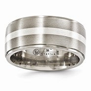 Titanium Brush & Polished with Sterling Silver 10mm Wedding Band Ring