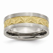 Titanium Brushed and Yellow IP-plated Mens 8mm Wedding Band Ring