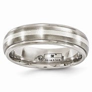 Titanium Brushed & Polished with Sterling Silver 6mm Wedding Band Ring