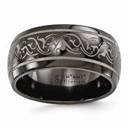 Titanium Domed Laser Patterned 10mm Wedding Band Ring