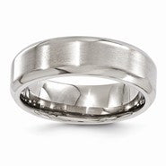 Titanium Polished & Brushed Beveled 7mm Wedding Band Ring