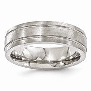 Titanium Polished & Brushed Grooved 7mm Wedding Band Ring