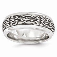 Titanium & Steel Patterned 9mm Wedding Band Ring
