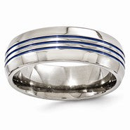 Titanium Triple Groove Blue Anodized 8mm Wedding Band Ring