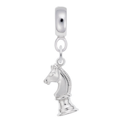 Is the knight the play maker in all your chess games? Then show it off with this Sterling Silver solid 3D chess knight charm dangle bead on your charm dangle bead bracelet!