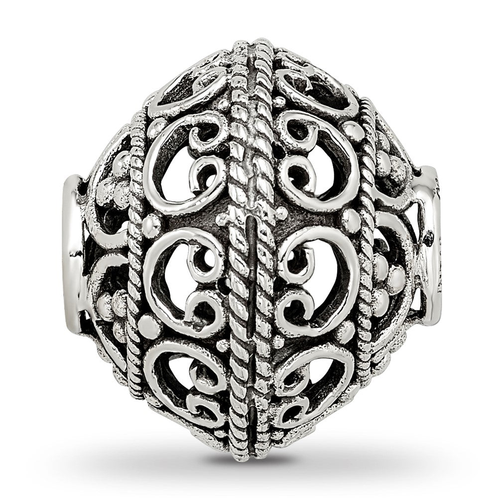 Antiqued And Polished Cut-Out Bali Charm Bead in Sterling Silver