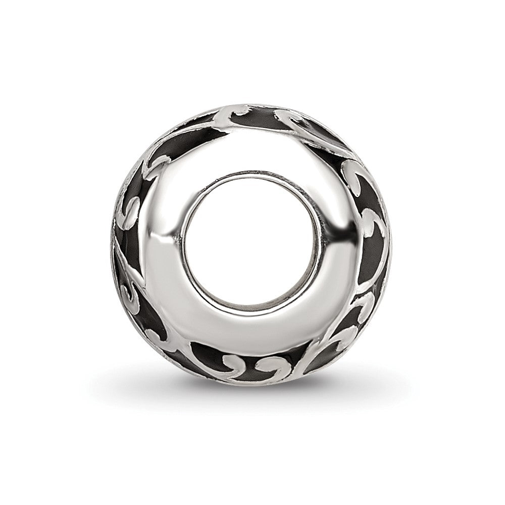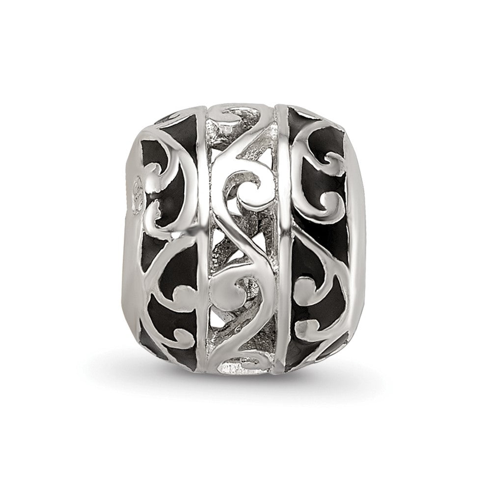 Black Enamel Swirl Design Charm Bead in Sterling Silver