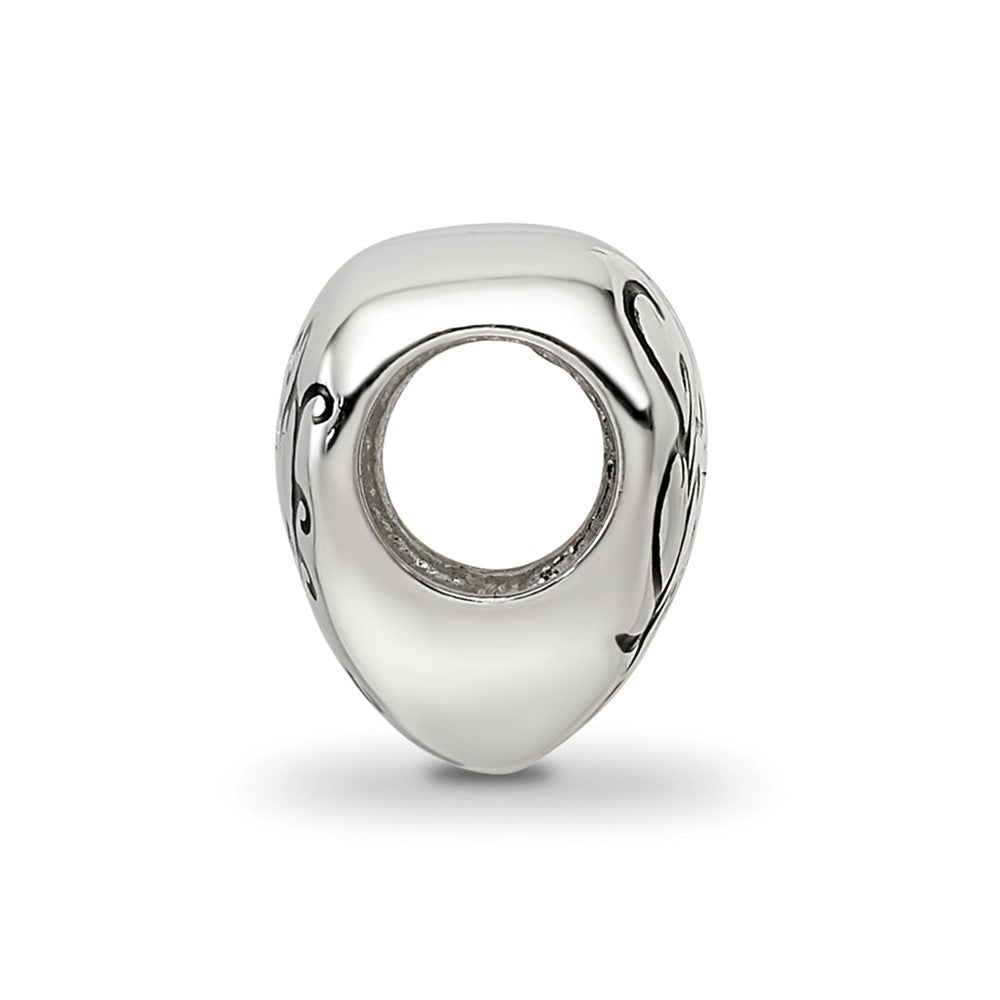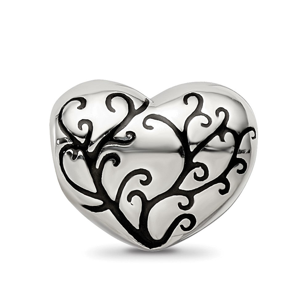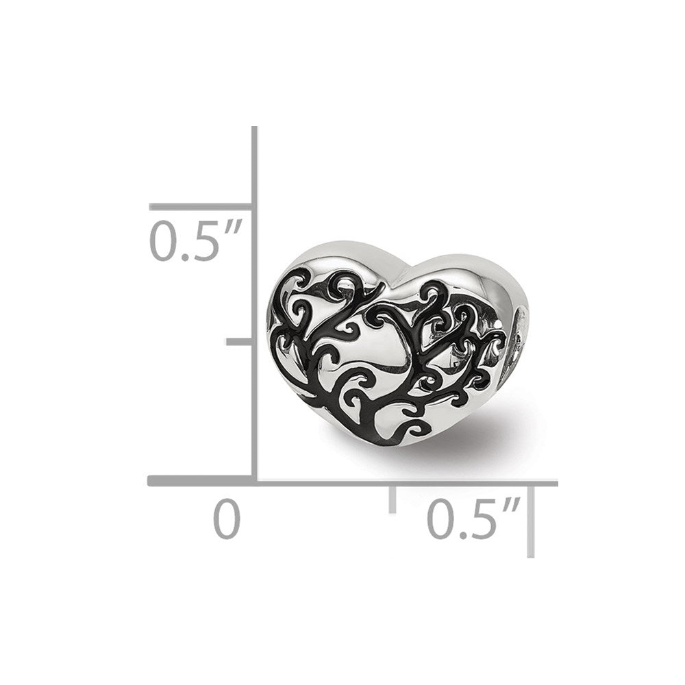 Black Enameled Charm Bead,Silver Ip-Plated Heart B in Sterling Silver