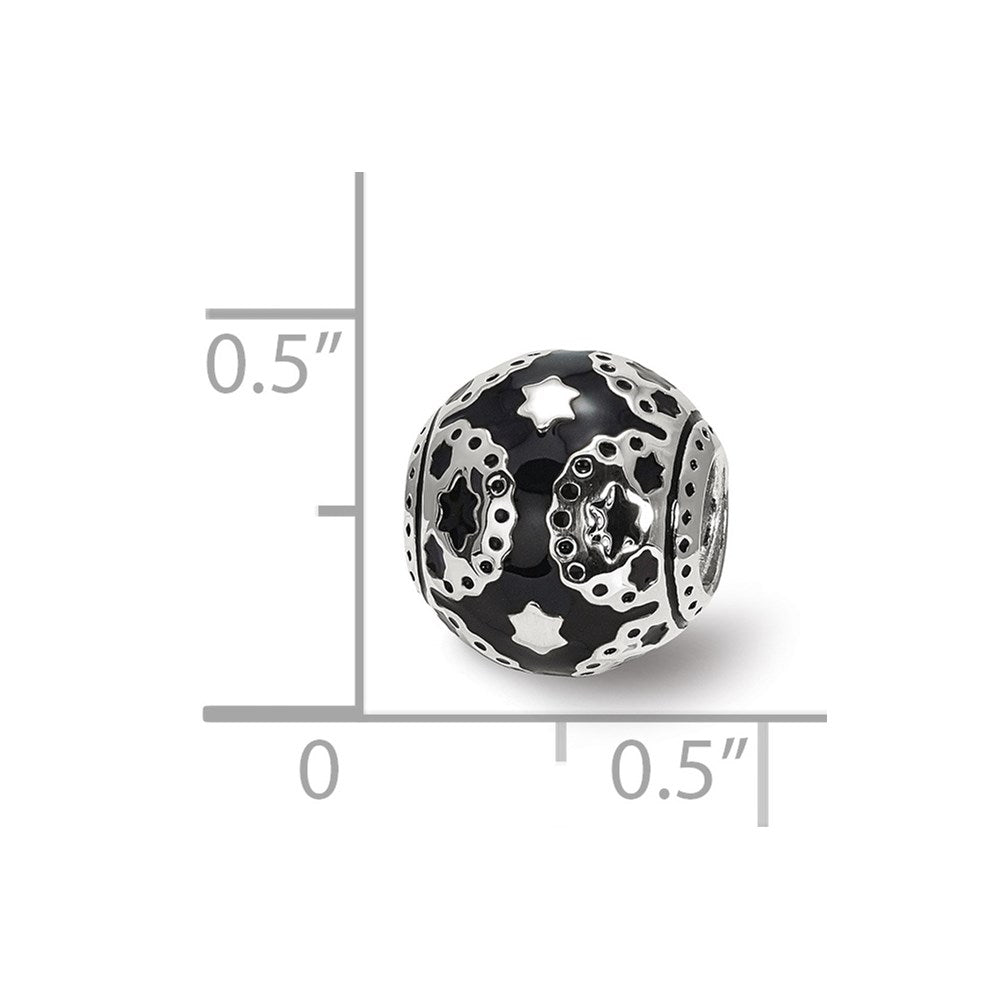Black Enameled,Silver Ip-Plated Lace Charm Bead in Sterling Silver