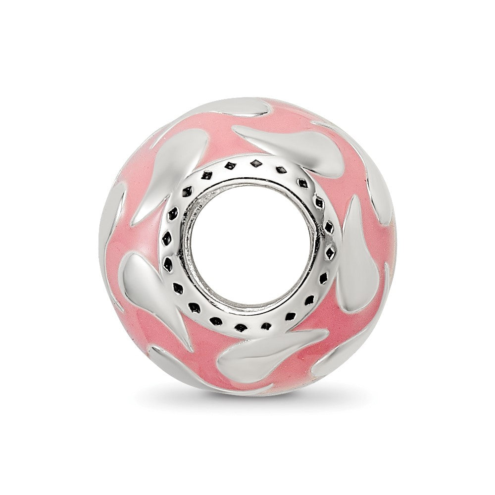 Pink Enameled & Silver Ip-Plated Charm Bead in Sterling Silver