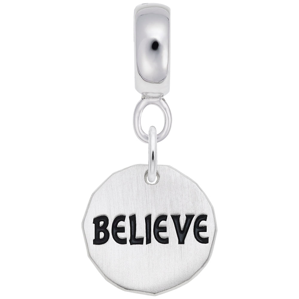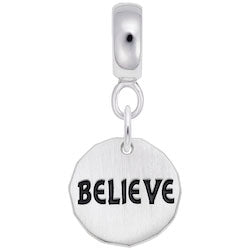"Believe" Remind yourself to believe in yourt heart, your faith, your friends and family, and everything else that means a lot to you. Wear this sterling silver believe tag charm dangle bead on your necklace or charm dangle bead bracelet.