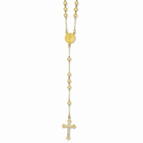 14K Two-Tone K& Rhodium Polished Rosary Necklace