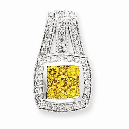 14K White Gold Yellow Diamond Pendant on Chain