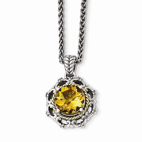 14K Yellow Gold and Silver Antiqued Citrine and Diamond Necklace