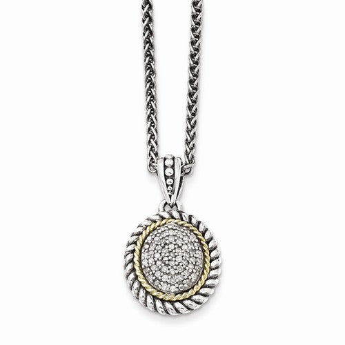 14K Yellow Gold and Silver Antiqued Diamond Necklace