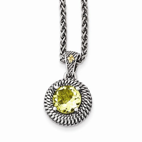 14K Yellow Gold and Silver Antiqued Lemon Quartz Necklace