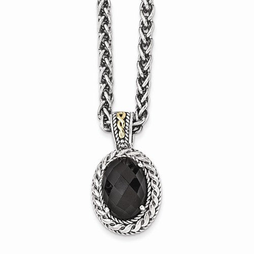 14K Yellow Gold and Silver Antiqued Onyx Necklace