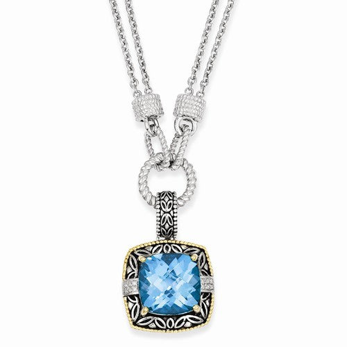 14K Yellow Gold and Silver Sky Blue Topaz & Diamond Necklace