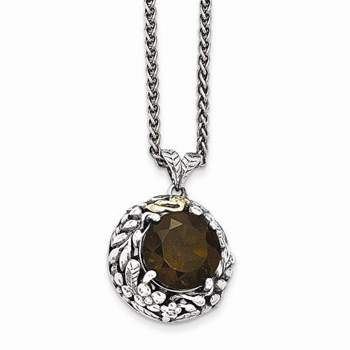14K Yellow Gold and Silver Smokey Quartz Necklace