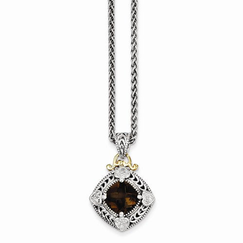 14K Yellow Gold Diamond & Smokey Quartz Necklace