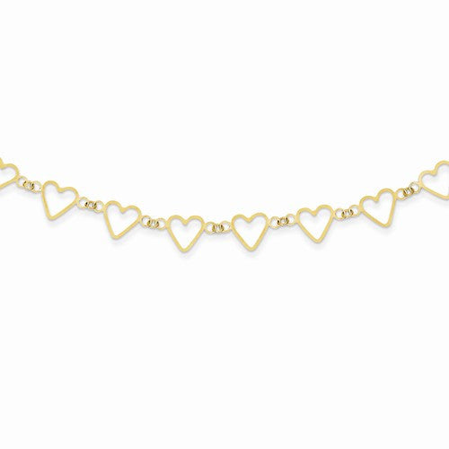 14K Yellow Gold Oval Cable Open Flat Hearts Necklace