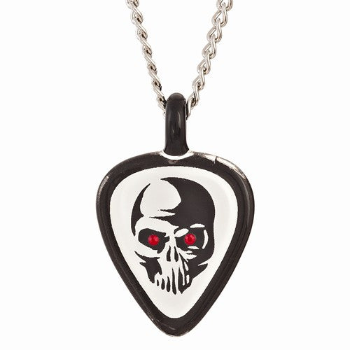 Black White Skull Guitar Pick Necklace