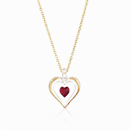 January Gold Trim Swarovski Birthstone Heart Necklace