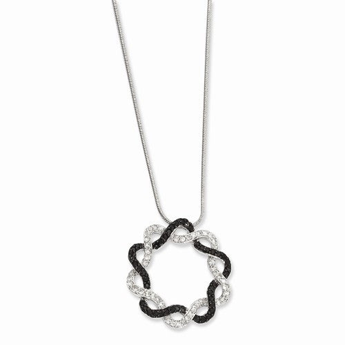 Rhodium-Plated Filigree Black & White CZ Pendant On Necklace