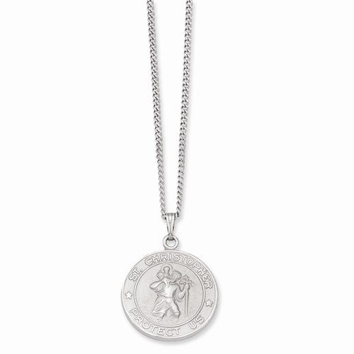 Rhodium-Plated St Christopher Medal Necklace