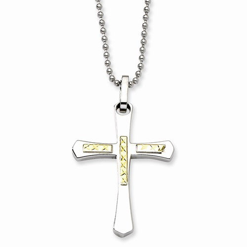 Stainless Steel Accent Diamond-Cut Cross Necklace