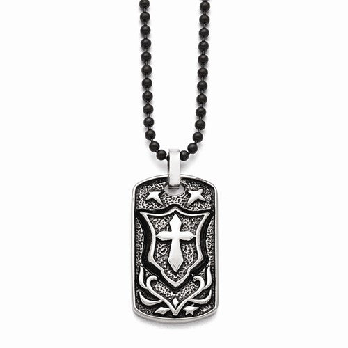 Stainless Steel Antiqued Cross Dog Tag Pendant On Necklace