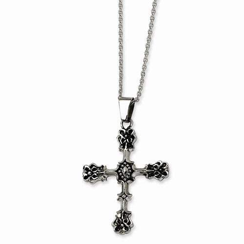 Stainless Steel Antiqued Cross Pendant On Necklace