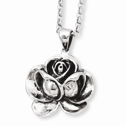 Stainless Steel Antiqued Flower Pendant On Necklace