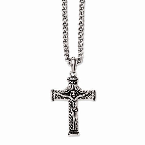 Stainless Steel Antiqued & Polished Crucifix Necklace