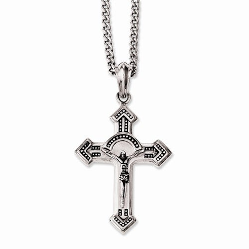 Stainless Steel Antiqued & Polished Crucifix Necklace