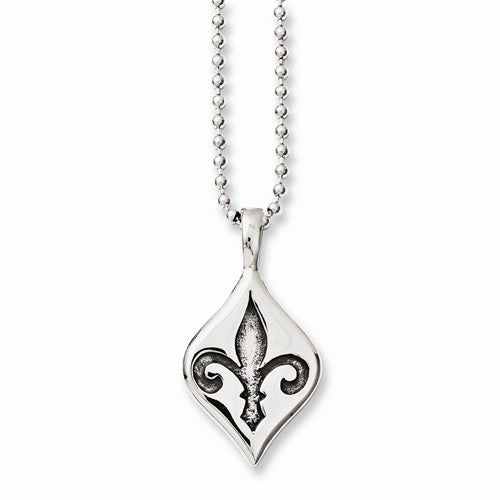 Stainless Steel Antiqued & Polished Fleur De Lis Necklace
