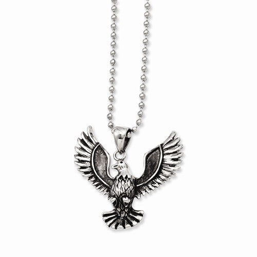 Stainless Steel Antiqued Screaming Eagle Pendant On Necklace