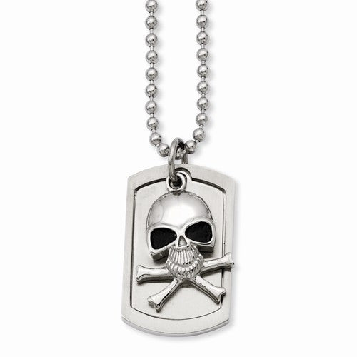 Stainless Steel Antiqued Skull & Cross Bones Dog Tag Necklace