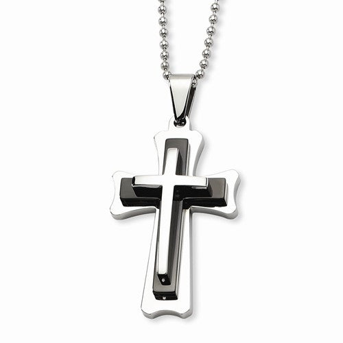 Stainless Steel Black Acrylic & Polished Cross Necklace