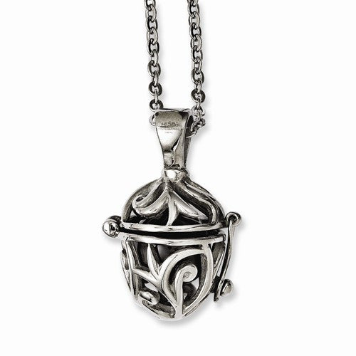 Stainless Steel Black Agate Fancy Pendant On Necklace
