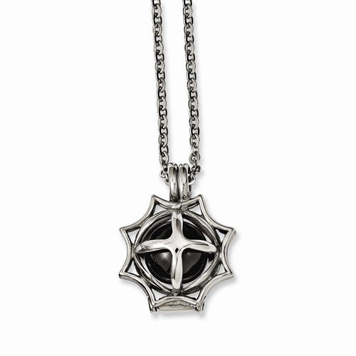 Stainless Steel Black Agate Pendant On Necklace