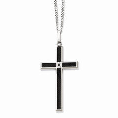 Stainless Steel Black Carbon Fiber & Black Diamond Cross Necklace