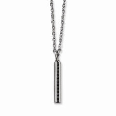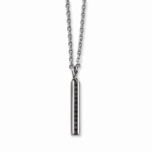 Stainless Steel Black CZ Thin Pendant On Necklace