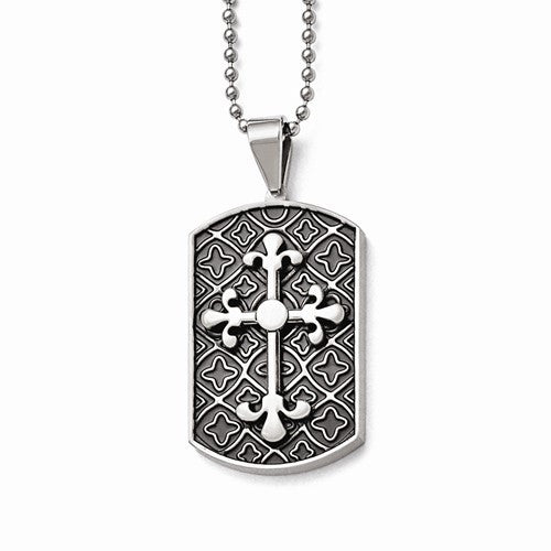 Stainless Steel Black Enamel & Cross Dog Tag Pendant On Necklace