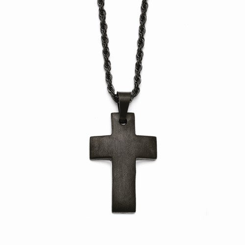 Stainless Steel Black Ip-Plated Brushed Cross Necklace