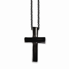Stainless Steel Black Ip-Plated Cross Pendant On Necklace