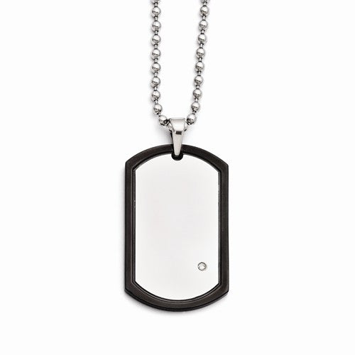 Stainless Steel Black Ip-Plated CZ Dog Tag Polished Necklace