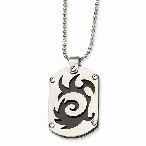 Stainless Steel Black Ip-Plated Swirl Dog Tag Necklace