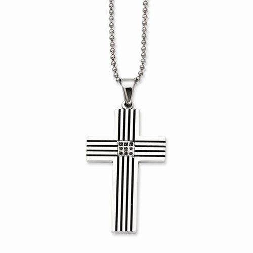Stainless Steel Black-Plated & Black Diamonds Cross Necklace
