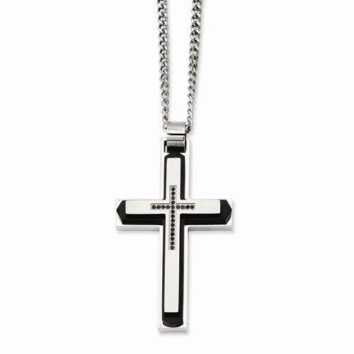 Stainless Steel Black-Plated & Black Diamonds Cross Necklace
